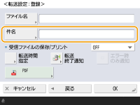 <転送先>を<ファクスボックス>に指定した場合、<件名>は入力できません。