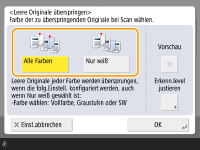 Um leere Originale ungeachtet ihrer Farbe auszulassen, wählen Sie <Alle Farben>. Um nur weiße, leere Originale auszulassen, wählen Sie <Nur weiß>.