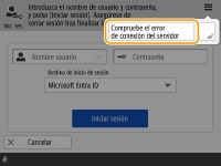 <Compruebe el error de conexión del servidor> en la esquina superior derecha de la pantalla de inicio de sesión.