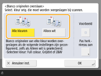 Als u blanco originelen ongeacht hun kleur wilt overslaan, selecteert u <Alle kleuren>. Als u alleen witte blanco originelen wilt overslaan, selecteert u <Alleen wit>.