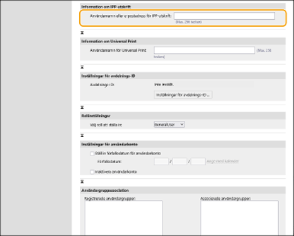 Ställ in detta när du associerar registrerade användare med IPP-utskriftsjobb.