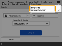 <Kontrollera serveranslutningen> i det övre högra hörnet på inloggningsskärmen.