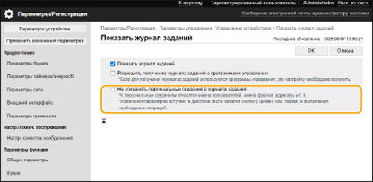 Теперь можно запретить запись личной информации, такой как имя пользователя, имя файла и адресат, в журнал заданий и журнал аудита.