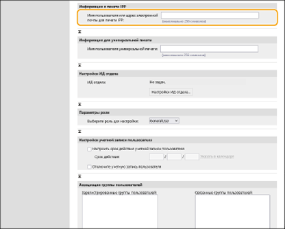 При регистрации информации о пользователе теперь можно указать имя пользователя или адрес электронной почты, используемые для печати с помощью протокола IPP.