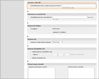 Při registraci informací o uživateli lze nyní nastavit jméno uživatele nebo poštovní adresu používanou pro tisk IPP.