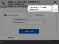 <Comprovar la connexió del servidor> a la part superior dreta de la pantalla d’inici de sessió.