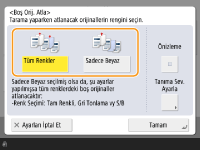<Boş Orij. Atla> öğesi ayarlandığında, yalnızca <E-Posta> veya <Dosya> türü hedefleri belirtilebilir. Türü <E-Posta> veya <Dosya> dışında bir hedef varsa gönderme işlemi gerçekleştirilemez.