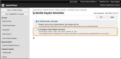 İş günlüğü ekranını ayarlarken kişisel bilgilerin yazılmasını yasaklayan bir öğe eklendi.