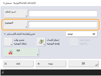 لا يمكن إدخال موضوع في <الموضوع> عند تحديد <علبة بريد الفاكس السري> لـ <وجهة إعادة التوجيه>.