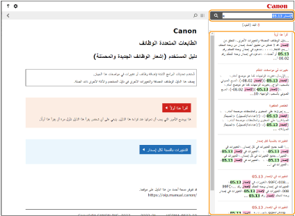 البحث باستخدام كلمة رئيسيةالبحث عن طريق إدخال الإصدار ككلمة رئيسية (على سبيل المثال "الإصدار 4.02") يعرض قائمة بالصفحات التي تحتوي على تلك الكلمة الرئيسية. يمكنك بعد ذلك البحث من خلال الصفحات المدرجة.