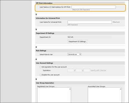 Ορίστε τα στοιχεία αυτά κατά τον συσχετισμό εγγεγραμμένων χρηστών με εργασία εκτύπωσης IPP.