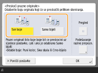 Moguće je navesti samo odredišta vrste <E-mail> ili <Datoteka> kada je postavljeno <Preskoči prazne originale>. Slanje nije moguće ako je postavljeno odredište vrste različite od <E-mail> ili <Datoteka>.