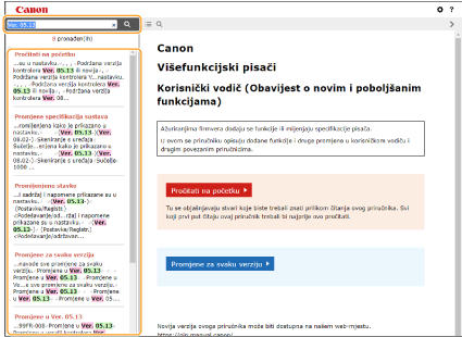 Pretraživanje po ključnoj riječiPretraživanje unosom verzije kao ključne riječi (npr. „Ver. 4.02”) prikazuje popis stranica na kojima se nalazi ta ključna riječ. Potom možete pretraživati navedene stranice.