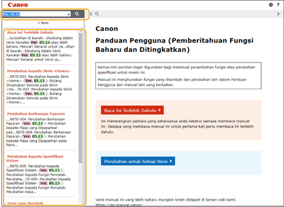Cari halaman senaraiCari dengan kata kunciMencari dengan memasukkan versi sebagai kata kunci (misalnya, “Ver. 4.02”) memaparkan senarai halaman termasuk kata kunci tersebut. Nanti, anda boleh mencari melalui halaman yang disenaraikan. |