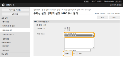 MAC 주소를 선택하고 [삭제]를 클릭합니다.