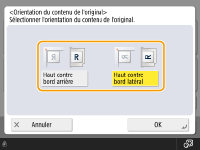 <Régler chq couleur>, vous pouvez ajuster la densité du fond par couleur.![]() | Vous pouvez spécifier l'orientation d'un document original placé sur la vitre d'exposition ou dans le chargeur dans le sens horizontal ou vertical. |