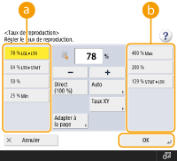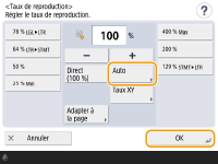 ![]() | Vous pouvez automatiquement agrandir ou réduire les documents au format du papier sélectionné pour la copie. Agrandir ou réduire les copies au format du papier |