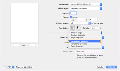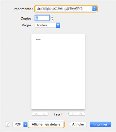 Ouvrez un document et affichez l'écran d'impression.
