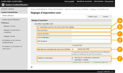 [Importation auto lors de la mise à jour des réglages]Cliquez sur le bouton [Mettre à jour] pour démarrer l'importation.