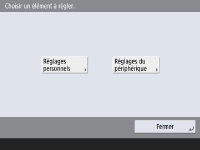 Gestion des utilisateurs) est activée, vous pouvez afficher <Réglages personnels> et <Réglages du périphérique> en appuyant sur