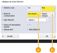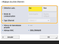 Appuyez sur <Oui> dans <Détection auto.>. Le mode de communication et la variante d'Ethernet sont détectés, puis automatiquement configurés.