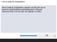 Lorsque vous avez exécuté toutes les instructions du guide de configuration, redémarrez l'appareil pour appliquer les réglages sélectionnés. ![]() ![]() Appuyez sur <OK> pour redémarrer l'appareil. |