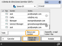Al buscar destinos en el servidor LDAP, pulse <Buscar por nombre> o <Buscar por condición>.