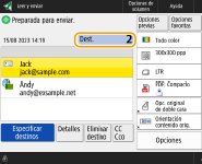 Pantalla de funciones básicas de EscaneadoEspecificar destinos de la libreta de direcciones