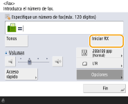 <RX automática> ![]() | Dedicado a la recepción de faxes El equipo recibe faxes automáticamente. Incluso si alguien le llama, no podrá hablar con él. |