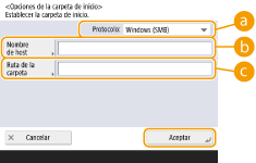 (Config./Guardar) <Opciones de funciones> <Guardar/Acceder a archivos> <Opciones de red> <Método de especificación de carpeta personal>