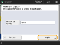 Introduzca el nombre de la nueva carpeta de destino y pulse <Aceptar>.