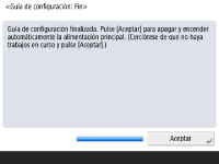 Al finalizar la Guía de configuración, reinicie el equipo para aplicar las opciones especificadas. ![]() ![]() Pulse <Aceptar> para reiniciar el equipo. |
