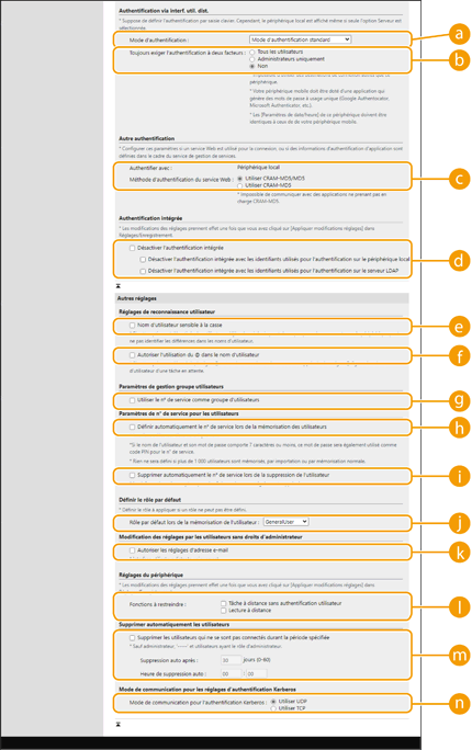 Dispositif d'authentification). Notez que les dispositifs d'authentification doivent être configurés avant d'effectuer les réglages ci-dessous.