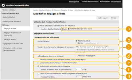 Configurez les réglages ci-dessous pour utiliser l'authentification au clavier.