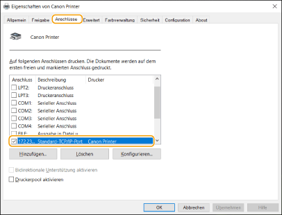 Vergewissern Sie sich, dass für den Drucker der richtige Port ausgewählt ist.
