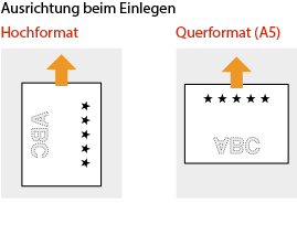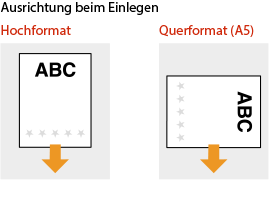 Die Einstellung <Papierzufuhrmethode schalten>Wenn Sie auf bereits bedrucktes Papier drucken, müssen Sie bei jedem Wechsel zwischen einseitigem und doppelseitigem Druck beachten, mit welcher Seite nach oben das Papier eingelegt werden muss. Wenn <Papierzufuhrmethode schalten> jedoch auf <Vorrang Druckseite> gesetzt ist, kann die Seite, die Sie zum Einlegen von bereits bedrucktem Papier für den doppelseitigen Druck verwenden, auch für den einseitigen Druck verwendet werden. Diese Einstellung ist besonders nützlich, wenn Sie häufig zwischen ein- und doppelseitigem Drucken wechseln. <Papierzufuhrmethode schalten> |