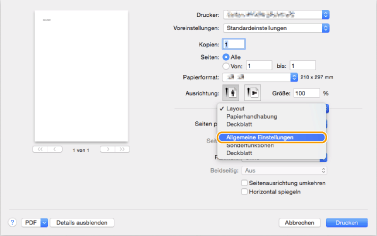 Öffnen Sie ein Dokument, und zeigen Sie das Druckfenster an.