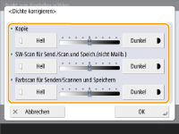 Wenn sich die Dichte des Drucks erheblich von der Dichte des Originaldokuments unterscheidet, befolgen Sie die nachfolgende Vorgehensweise, um die Scandichte so zu justieren, dass sie eine größere Übereinstimmung mit dem Originaldokument aufweist.