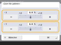 Legen Sie die Vergrößerung von <X> für die Anpassung der horizontalen Breite fest und die Vergrößerung von <Y> für die Anpassung der vertikalen Breite.
