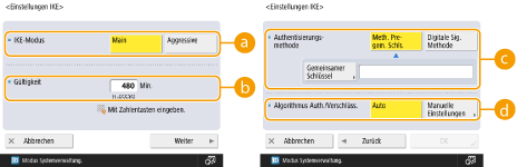1 | Drücken Sie <Einstellungen IKE>. | ||||||||||