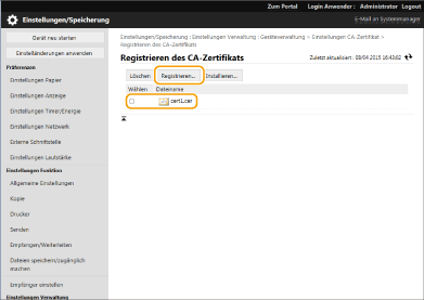 Klicken Sie auf [Registrieren des CA-Zertifikats].
