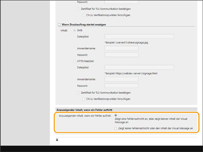 Wenn der Inhalt aus irgendeinem Grund nicht angezeigt wird, wählen Sie, ob ein Fehlermeldungsbildschirm angezeigt werden soll.