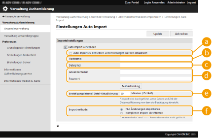 [Bestätigungsintervall Datei-Aktualisierung:]Sie können das Intervall in Minuten zum Prüfen von zu importierenden Dateien festlegen.