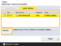 Selezionare il lavoro da annullare e premere <Annulla>.