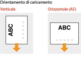 Questa sezione descrive come caricare carta prestampata quando si esegue la copia/stampa su un lato. Quando si esegue la copia/stampa fronte-retro con carta prestampata, caricare la carta tenendo presente che le indicazioni relative alla direzione della carta riportate in questa sezione hanno significato opposto.