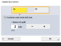 Selezionare <On> per emettere il tonale in entrata o <Off> per non farlo. Se è stato selezionato <Off>, procedere all’operazione 5.