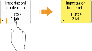 Utilizzare come se si trattasse di uno smartphone (scorrere/trascinare e rilasciare)In alcune schermate, è possibile cambiare pagina o scorrere sullo schermo con il dito verso l'alto/il basso o verso sinistra/destra come se si trattasse di uno smartphone. Le operazioni di scorrimento e trascinamento della selezione non possono essere utilizzate quando <Inversione colori schermo> è impostato su <On>. <Inversione colori schermo>Nelle schermate che consentono lo spostamento dei pulsanti, i pulsanti possono essere spostati mediante trascinamento. Scorrimento di un elencoSu alcuni schermi, scorrere verso l'esterno di un elenco continua a far scorrere l'elenco. |
