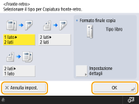Premere <OK> per applicare le impostazioni e premere <Annulla impost.> per eliminare le modifiche e ripristinare le impostazioni precedenti.