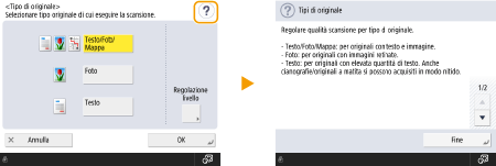 Inoltre, vengono visualizzati i pulsanti <Annulla> che annulla l'impostazione e torna alla schermata precedente, <Avanti> che applica l'impostazione per passare alla schermata successiva, <Indietro> che torna all'impostazione precedente e <Chiudi> che chiude la schermata attualmente aperta.