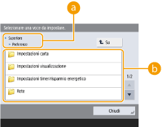 Elenco delle voci di impostazione